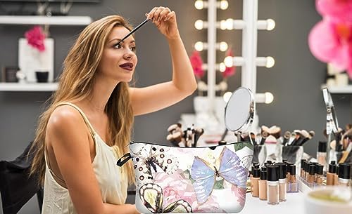 🛍️【Size】The cosmetic bags size is approx 22 x 13.5 x 18cm / 8.65 x 5.35 x 7.08 inches. It can easily carry all the toiletries, makeup, makeup tools you need, such as lipstick, lotion, eyebrow Pens, eye shadows, creams or men’s shaving kits, etc. it can also be used as a pencil bag or coin purse creams or men’s shaving kits, etc. it can also be used as a pencil bag or coin purse