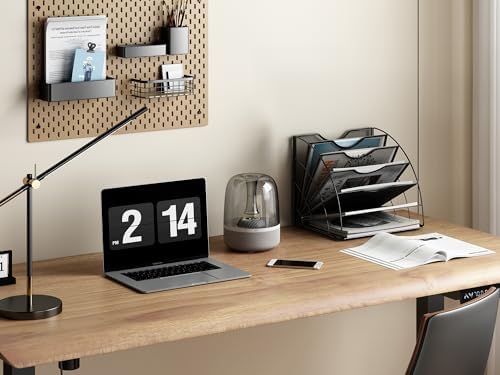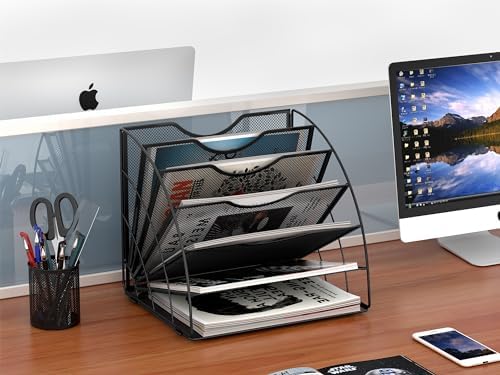 Easypag Fan Shaped 6 Compartment Desktop Mesh In Tray Office Desk Tidy A4 File Holder Mail Sorter Paper Organiser Magazine Storage Shelf Filing Rack, Black