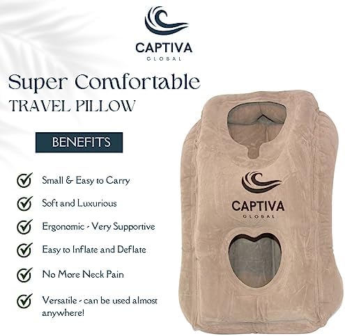 Introducing the Captiva Global Travel Pillow, your perfect inflatable travel companion for a comfortable restful sleep on airplanes, napping in cars, and even office napping. With its ergonomic design, the Captiva Global Travel Pillow is easy to inflate and store, making it the ideal gadget for sleeping on a plane. The pillow is skin-friendly and lightweight, avoiding neck and shoulder pain, making your long haul flights less strenuous. The double-layer construction and wear-resistant material provide optimal support and comfort, making it an airline inflatable that you can always rely on. The Captiva Global Travel Pillow is the perfect sleeping device for airplanes, with a portable travel bag and a very small compressed size that makes it easy to carry wherever you go. The package comes with a free 3D eye mask and earplugs to enhance your sleeping experience. This inflatable pillow for planes is perfect for travelers, airplane, office, school, train, or bus. Get rid of bad posture, and purchase the Captiva Global Travel Pillow today.