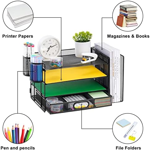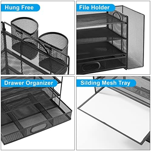 【SPACE SAVING】Equip your space with the hanging pen holder (built-in hook) and vertical file holder that provides everything you need and make the most of your vertical and horizontal space to keep your desk tidy so you can stay focused and do great work.