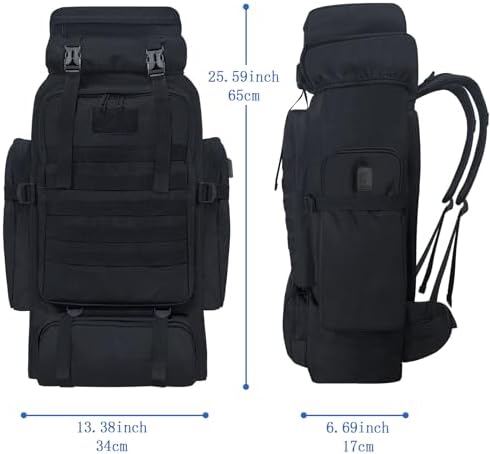 Travel Backpack Size: The hiking backpack men size is 25.59*13.38*6.69 inches (65*34*17cm), This hiker backpack weighs only 2.8lb/1.3kg for easy carrying, and will not add burden to your travel. It is suitable for camping, hiking, hunting, climbing. We are confident with our product, if you have any questions or doubts about our hiking backpacks, please feel free contact us at anytime, we will give you a reply within 24 hours.
