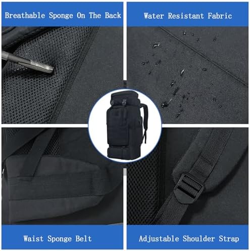 Durable & Water Resistant: Made of high-quality oxford fabric, this camping hiking backpack is durable, wear-resistant, and scratch-resistant. The water resistant layer on the surface can effectively prevent water from splashing into the camping rucksack, keeping your belongings dry in wet conditions. The metal zippers and adjustable shoulder straps make the climbing backpack more durable and comfortable to wear.