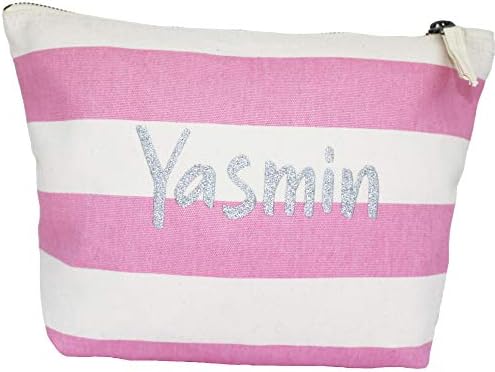 Pink and White Striped Zip Fastening Travel Wash Makeup Bag. One Size: 20 x 28cm (approx.). Sparkly Silver or Pink Embroidery. High Quality Shiny Printed Design. Soft 100% Poyester Canvas with Full Zip Closure. A Perfect Gift. Wash and accessory bag, ideal for travel days!