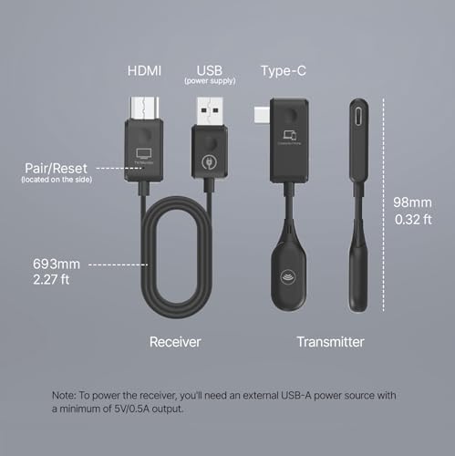 【Full HD 1080P@60Hz】 Experience stunning video quality with ultra-high-definition resolution at 60Hz, ensuring sharp and vibrant visuals. Enjoy swift and lag-free transmission with our 5GHz connection, ideal for high-bandwidth activities like gaming and video streaming. To power the receiver, you’ll need an external USB-A power source with a minimum of 5V/0.5A output.