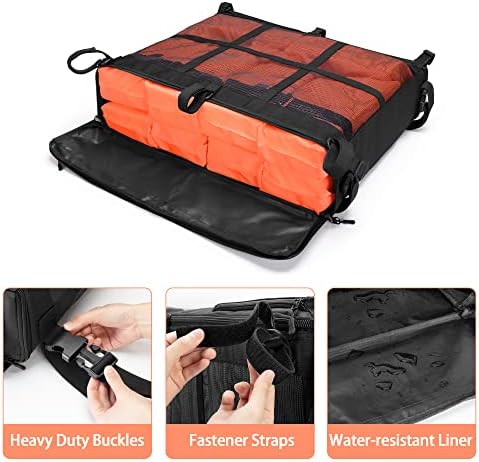EASY TO INSTALL: 4 adjustable snap buckle straps and 6 hook and loop fastener strap enable it to quick fix the life jacket storage bag on the top of boat and prevent the bag from sagging.