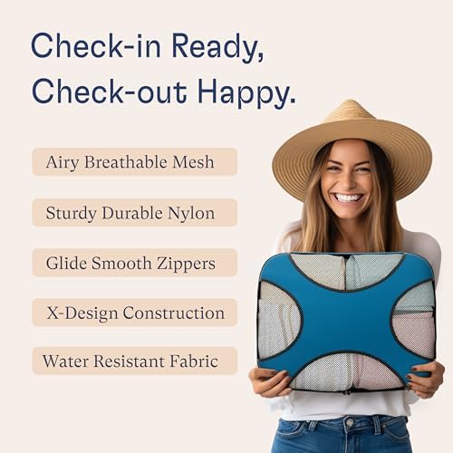 – 4 Packing Cubes -Extra Large( 17.5″ x 12.75″ x 4″) Large (13.75″ x 12.75″ x 4″) Medium (13.75×9.75×4) Small (11″ x 6.75″ x 4″)