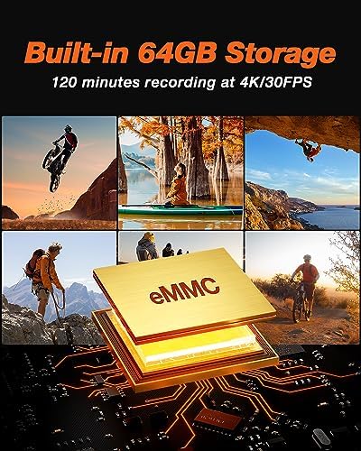 【Built-in 64GB Storage & 1600mAh Battery】iZEEKER iA400 sports camera has a built-in 64GB storage capacity, eliminating the need for an additional memory card, so you don’t have to worry about memory cards and enjoy your outdoor adventures to the fullest. iA400 has a built-in non-removable 1600mAh battery that can record up to 120 minutes of continuous recording at the highest definition. The magnetic charging design allows you to get a better charging experience without plugging in a cable.