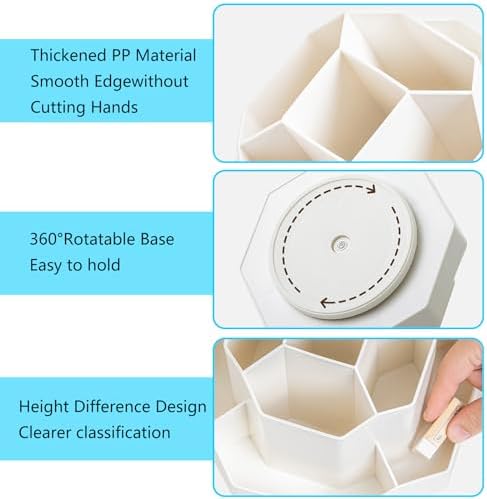 1.Desk organiser can be rotated 360°, the high-quality roulette at the bottom makes the rotation very smooth and stable. You can rotate desk organiser to any angle to easily store or take out what you want, keeping everything within reach, keep your desktop clean and organized.