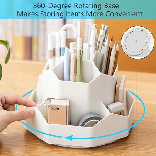 【360° ROTATING DESK ORGANISER】Desk organiser can be rotated 360°, the roulette at the bottom makes the rotation very smooth and stable. You just need to gently rotate the pen holder according to your needs,you can easily rotate the stationery in front of you, easily storage or remove items. Greatly improve your work efficiency and make your life easier and faster.