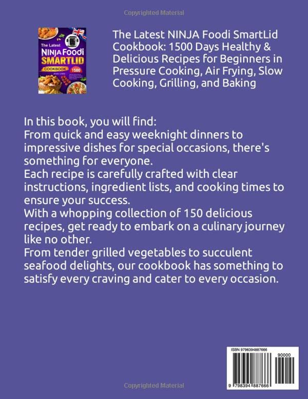 The Latest NINJA Foodi SmartLid Cookbook: 1500 Days Healthy & Delicious Recipes for Beginners in Pressure Cooking, Air Frying, Slow Cooking, Grilling, and Baking