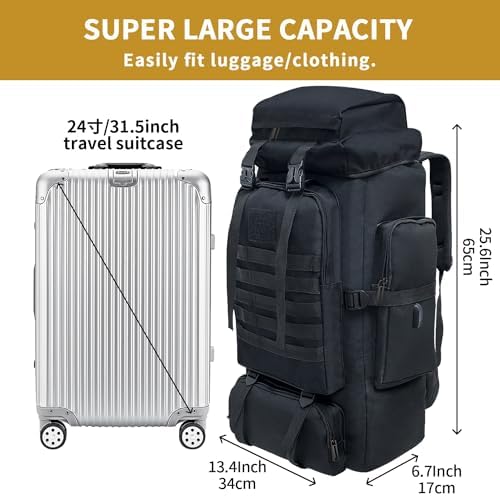 Vaupan 80L Hiking Backpack Molle Backpacks with USB Charging Port for Tactical Military Camping Hiking Trekking Traveling. This Tactical Pack is Super Reliable and Durable.