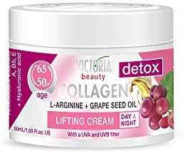 Victoria Beauty Day and Night Moisturiser with Collagen, Hyaluronic Acid, L-Arginine, Grapeseed Oil, and a UVA/UVB Filter for Ages 50 – 65, Pack of 2 Creams (2 x 50 ml) A multi-purpose cosmetic product, meticulously formulated to provide wholesome skin care for the skin aged 50 – 65. Enriched with collagen and L-arginine, an extremely valuable amino acid with proven mature skin effects, the product improves the facial contour, renews and revitalizes the skin. The formula with a restoring antioxidant combination (vitamins A, B5 and E), hyaluronic acid, and grape seed oil deeply nourishes, protects, and revitalizes the skin. Contains а UVA and UVB filter. Contains Benzophenone-3. How to use: Apply on clean and dry skin mornings and/or evenings. The moisturiser can be used as an eye contour cream on the sensitive and thin skin under the eyes. Perfect for both men and women. Storage: Store in a dry place at temperatures below 25°C, protected from direct sunlight! Keep away from children!