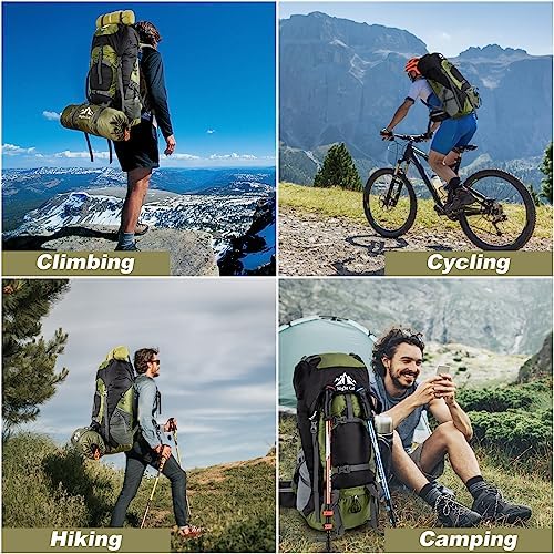 【Extra Straps and Rain Cover】There are extra quantity and leghth straps on this camping rucksack, which could be well used to hang tent, sleeping bag, trekking pole and other gears