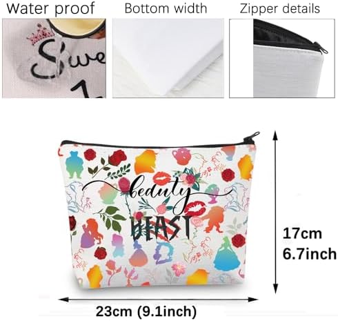 FEATURES These Beauty Beast gift zipper makeup pouch bags are great gifts that are simple and special. double-sided high quality images printed, waterproof coating, these portable bags convenient to use in daily life