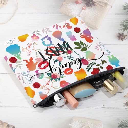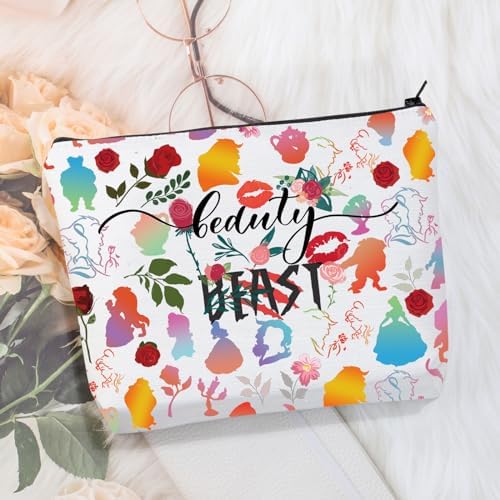 These Beauty Beast themed zipper Cosmetic Pouch as love quoted gifts, compliment gifts, inspirational quote gifts, and self-gift, attracting gift, adventurous gifts multipurpose bag canvas bags cosmetic pouch for purse functional portable bag travel makeup organizer bag.