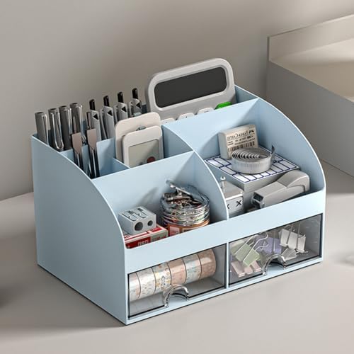Desk Organisers with Drawer Multifunctional Stationary Organiser Large Capacity File Organiser Desktop Debris Organizer for Home Office and School Papers Pens Books Letters and Documents(Blue)