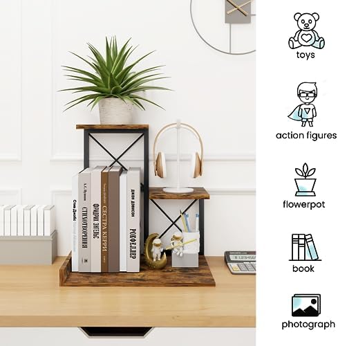 STURDY CONSTRUCTION: This desktop bookshelf is made up strong metal frame with a durable rust-resistant finish. The size of desk shelf is 9.25″D x 11.8″W x 11.4″H, not only designed for books, but also for desk decorations. Perfect small desk accessories.