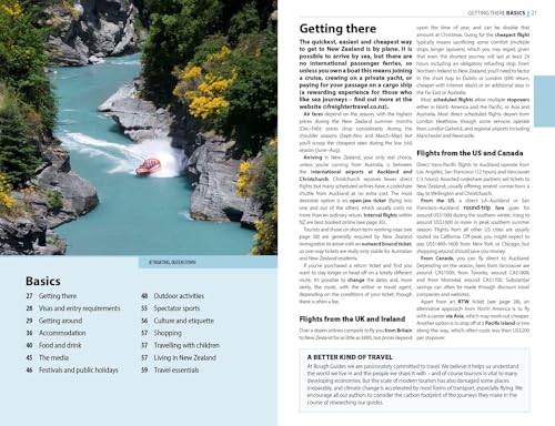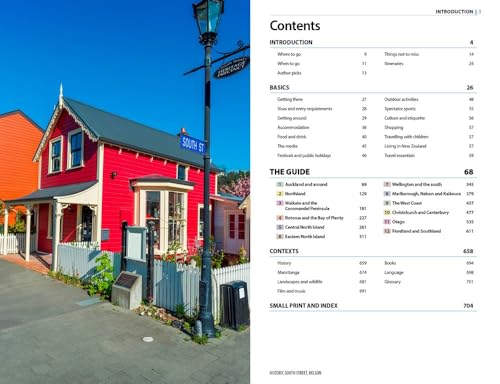 The Rough Guide to New Zealand covers: Auckland and around, Northland, Waikato and the Coromandel, Rotorua and the Bay of Plenty, Central North Island, Eastern North Island, Wellington and the south, Marlborough, Nelson and Kaikoura, The west coast, Christchurch and Canterbury, Otago, Fiordland and Southland.