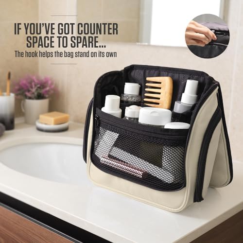 Simply put, we have thought of everything in terms of design, hook, space, material and convenience. Why put up with spills, messes and digging for toiletries when you can have the best toiletry organization in a compact hanging bag? There are mesh pockets, bags and zippers for everything from storing large shampoo bottles right down to small earbuds or tweezers that need their own compartment.