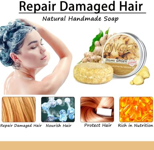 【Easy to Use】Wet your hair. Apply the ginger hair regrowth shampoo soap directly on your wet hair, rub the soap lightly on hair several times. Massage your scalp gently for 2-3 minutes with pulp of finger.Wash away the foam with warm water.