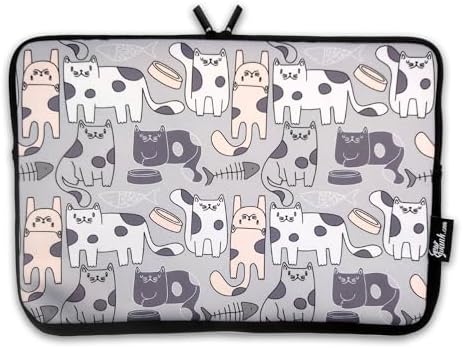 Chic Gray cats pattern. Smooth, top-load zipper makes it easy to secure your laptop. Made with durable, water-resistant Neoprene to prevent your laptop from accidental water spills and protects laptop or notebook from dust, shocks, bumps, scratches and spills. Compatible Devices: Ideal fit for most 15″ laptop for ACER, APPLE, ASUS, HP, LENOVO, SONY, SAMSUNG, TOSHIBA and more. Proper fitment varies according to the size of devices. Please check the dimensions of your device before purchasing. Interior Dimensions: 14.5″ x 10.25″ x 0.75” / 36.8 cm x 26.04 cm x 1.9 cm (L x W x H).