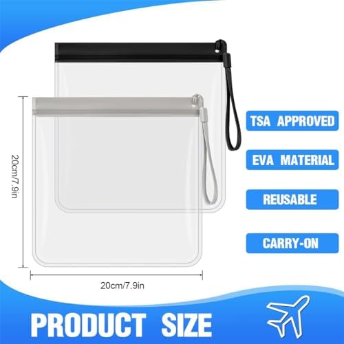 2-Pack Clear Travel Toiletry Bags,Airport Security Liquid Bag 20 x 20cm TSA Approved, Travel Accessories Makeup Holiday Essentials Luggage for Men Women