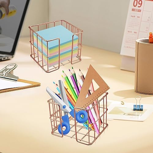 【Geometric Design】 This sticky note dispenser features a minimalist design. The simple lines are woven to look simple and generous, and the external color scheme of rose gold adds a touch of luxury. Use this post note holder to help you organize efficiently while making your desktop look elegant and generous.