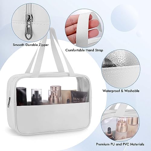 【High-Quality & New Design】 This clear cosmetic bag is made of high-quality PVC material, it is more durable and make your travel cosmetics or toiletries well organized. And the sturdy zips run smoothly and close securely. The end of the zipper is reinforced to prevent the slider from falling off. Make sure your items don’t fall out. It is suitable for travel and daily use.