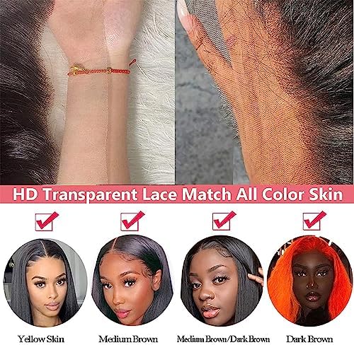 【HD Glueless Lace Wig Human Hair】HD Transparent Swiss Lace, with Slightly Bleached Knots Melt All Skin Color Well,Soft and Comfortable.Pre Plucked Natural Hairline with Baby Hair Around,Very Natural Looking.