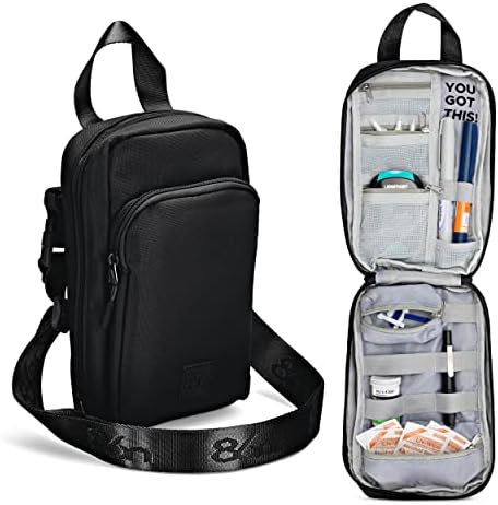 Premium quality diabetic travel case and multifunction crossbody bag custom designed to make life with type 1 diabetes and other medical conditions that little bit easier. Securely holds all diabetes supplies including 2 x insulin pens, glucose monitor, lancing device, glucagon, test strips, vials and more. Insulated with 5mm high quality PE foam PLUS NEW front insulated pocket to keep your medications cool and protected no matter where you are (ice pack not included). Flexible design and compact size makes this the ideal accessory for diabetes and other uses i.e. asthma, allergy, epipen, nurse or doctor’s bag. Internal compartment features extra elastic straps for additional supplies plus two zip pockets (one removable) to store sharps, syringes and other essential items. Back pocket for easy access to cell phone, keys and sunglasses. Multiple carry options with adjustable or removable shoulder strap plus top carry handle to serve as shoulder, fanny pack, crossbody, sling or simple carry bag. Premium quality double zippers that open flat to access all your supplies on-the-go without them falling out or having to put it down on dirty or wet surfaces. PLEASE NOTE: No diabetes or other medical products are supplied with this product, it is a bag only. Internal photos which include products are for demonstration purposes only.