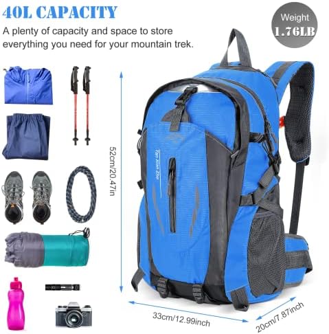 ▶ Lightweight & Large Capacity – Lightweight backpack for outdoor, Ultralight, only 1.76 pounds for 40L large capacity,reducing the backpack loading weight so that you can carry more other items.