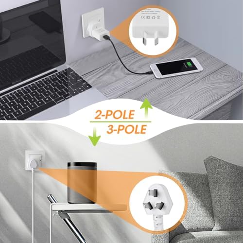 Grounding Protection:This aus to uk plug adapter is anti-overheating, good insulation, high temperature flame retardant.Perfect for plugging in high powered electricals such as computers, curling tongs, hair dryers, laptops, phones and more.(Max 250V,10A,total 2500W)