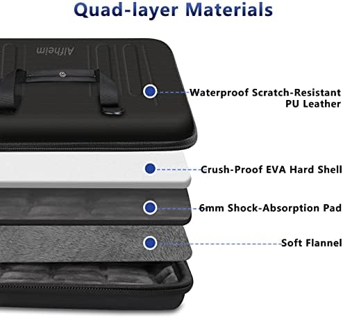 ✅【Shock-absorption Interior】Alfheim hard shell sleeve equips with 6mm thick shock-absorption padding in the laptop compartment and EVA hard shell, which can provide your laptop with 360° all around protection from squashing, deformation, knocks and bumps. The four sides are also filled with 6mm thick shock-absorption padding to protect your computer in all directions. Besides, there is a board is covered with soft flannel to protect your laptop from being scratched by accessories.