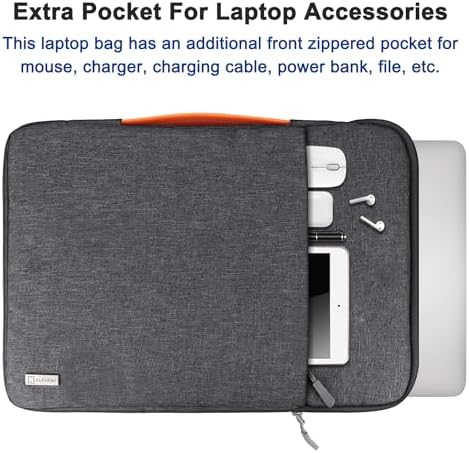 Extra Storage Pouch and Front Pocket: This laptop sleeve comes with an accessory pocket can hold small items that can be carried around, such as a mouse, headphones, data cable, writing pen and so on. Keep your items in order. There is also a pocket on the surface of the laptop sleeve, suitable for storing some files, notebooks and so on.