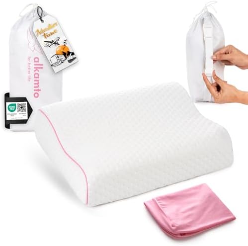✔ ERGONOMIC & ORTHOPEDIC -PERFECT FOR ALL TYPES OF SLEEPERS (SIDE/BACK)-Alkamto memory foam offers optimal support for the neck and cervical spine (HWS) and maximum comfort, preventing back and neck pain and tension. It does not contain any harmful chemicals. Alkamto Ergonomic Pillow is odorless and skin-friendly. You can roll it up and keep it clean. Packed size: 26 x 13cm Full size: 35 x 30 x 10 / 8 cm. You have 30 days right of return – enough time to test the pillow in peace.