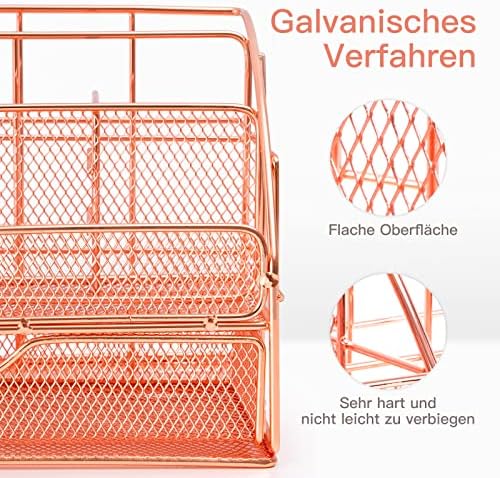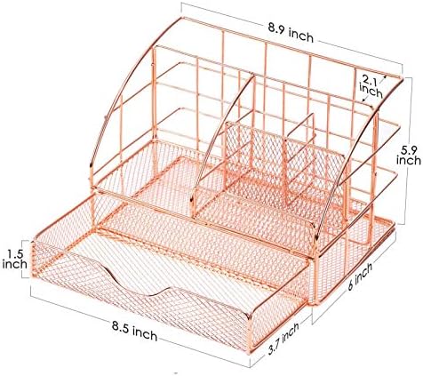 PREMIUM CRAFTSMANSHIP: ARCOBIS mesh desktop organiser is made of high-quality metal with a durable rust-resistant coating. The rounded edges give your workspace a more refined look and ensure its safety. The combination of wire mesh and rose gold, with enhanced metal rims and stylish appearance is what makes your desk stand out!