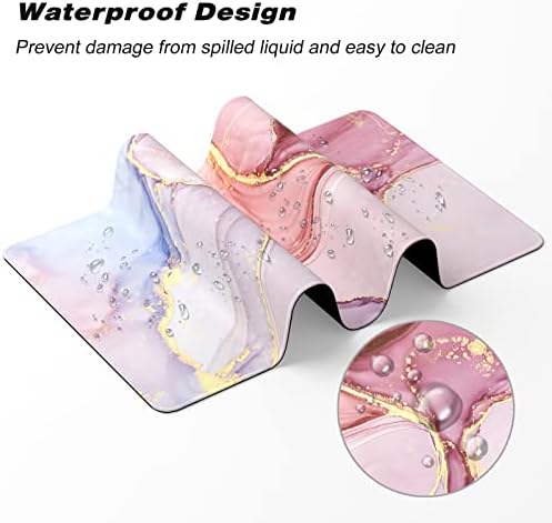 【Waterproof & Easy to Clean】Water resistant coating can effectively prevent accidental damage from spilled liquid, it is waterproof, dust-proof and sweat-proof. When liquid splashes on the mouse mat, it will form into water drops and slide down. Easy to clean with a wipe and will not delay your work or game. The full desk mouse pad great locking-color effect and it will not fade with repeated cleaning.