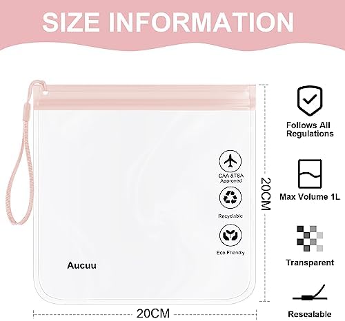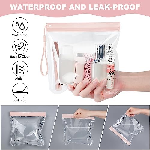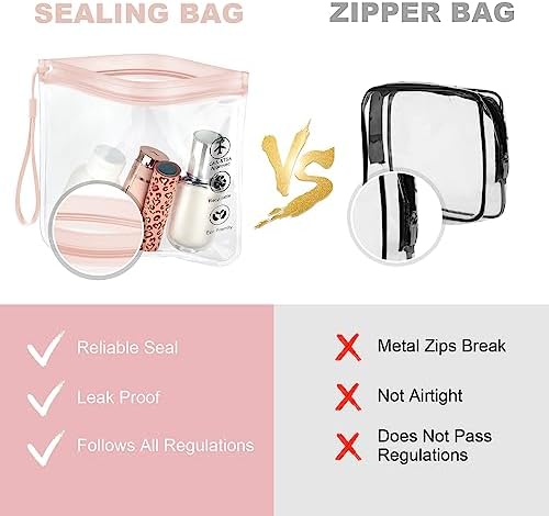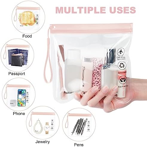 【Resealable Design】The transparent storage bag adopts advanced seamless crimping technology and is waterproof and leakproof. It prevents shampoo, creams, and other cosmetics from spilling and dirtying your carry-on bag or handbag. Just enjoy your travels without worrying.