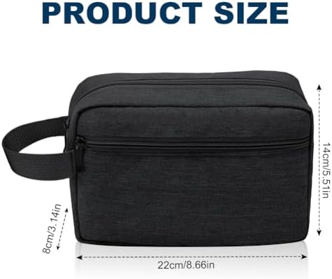 【Large Capacity】The size of the toiletry bag is 22*14*8cm/8.66*5.51*3.14in, which can provide large storage space. The spacious main compartment can accommodate large skin care products such as toothpaste, toothbrush, hairbrush, shaving set, conditioner, lotion and more. There are 3 pockets inside to store travel-sized toiletries upright. Plus the convenient side front zipper pocket provides extra storage space where you can store small items such as coins and credit cards.