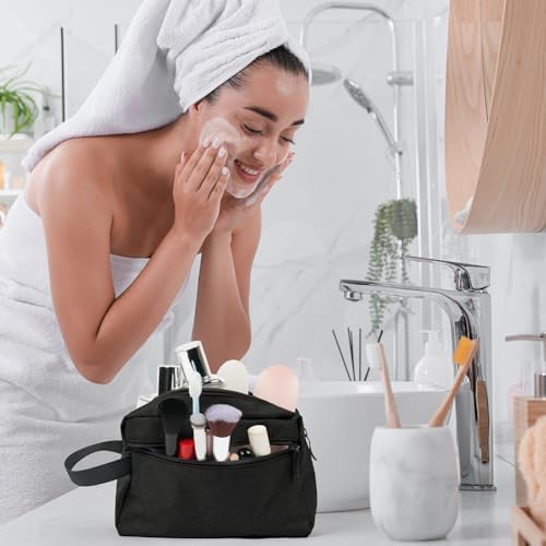 【Large Opening Design】The toiletry bag adopts a large opening design for quick access to the main compartment. It also features high-quality zippers and reinforced seams for easy opening and closing, and simply pulling the attached zipper pull fully exposes the storage space so you can access your items more easily.