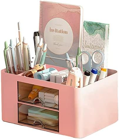 – 5 compartments and 2 drawers desktop organizer to store gel pens, glues, pencils, markers, erasers, staplers, sticky notes etc.