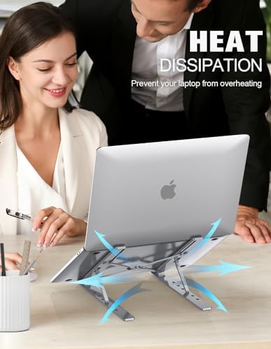 ♥【Cooling & Ventilation Design】100% Aluminum alloy material can absorb and discharge heat easily. What’s more, the hollow design and forward-tilt angle offers great heat dissipation and natural airflow to prevent your laptop from overheating.