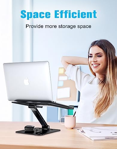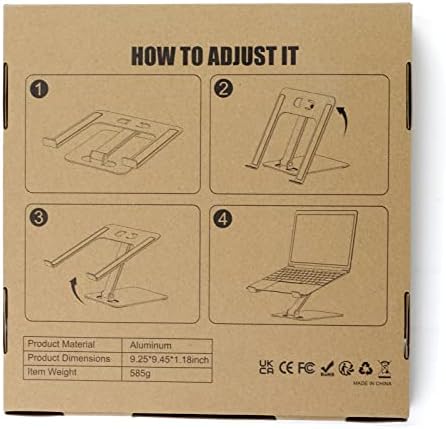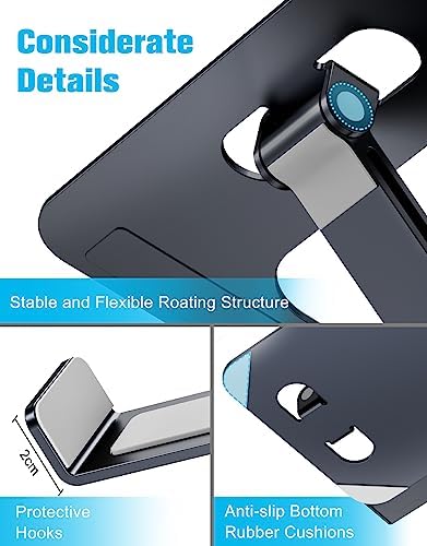 【Stable & Sturdy】The laptop stand for desk is made of high-quality aluminum alloy. It can support up to 8.8 lbs (4 kg) without shaking the panel. The panel and its two hooks are designed with non-slip straps to make the laptop holder more stable, and 4 non-slip silicone pads at the bottom help prevent the computer riser from sliding. These considerate designs are to ensure you better use.