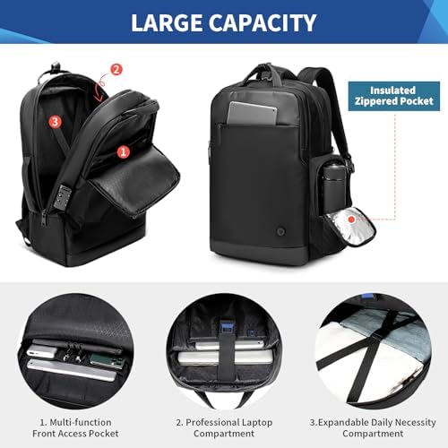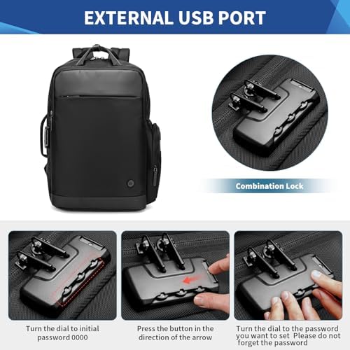 【Professional Anti-Theft Protection】①The large main pocket with 15.6-inch laptop compartment and expandable clothing area has a combination lock, which perfectly protect internal important items. ②The another main pocket with convenient organizer compartments for books, powerbank, pens etc. ③One insulated bottle holder with zipper for keep warm/cold. ④A hidden Frontpocket and a hidden card pocket on the shoulder strap for fast getting and anti-theft.
