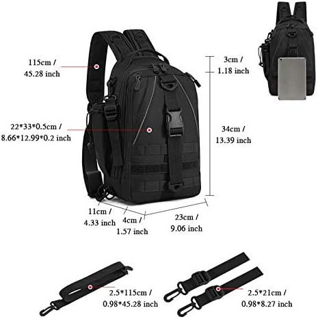 High Quality Material – Military-style nylon fabric durable and water-resistant.Large Capacity – Can hold iPad4, wallet, keys, ID card, credit card, small snacks and other small things.Practical MOLLE Design – MOLLE external expansion system designed to be used in combination with other equipment, you can load pockets,water bottle bag, accessory kits and other.Multiple Carrying Methods – One Strap Backpack, tactical backpack, Chest Sling Bag, tactical handbagOccasions – Suitable for sports fitness, outdoor travel, hiking, mountain climbing, camping, hunting, trekking and other outdoor activities.