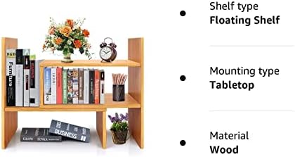 EASY TO ASSEMBLE: Wood desktop bookshelf is easy and simple for you to install on your own. Screws and double head(Slotted/Phillips) screwdriver are included. Dimensions (inches): L12.3(can extends to 24.01) X W6.7 X 13.8H.