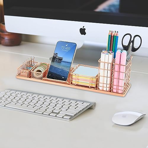 Reduce Desktop Clutter:This desk organizer, which is composed of 7 beautiful desktop accessories, includes 2 pencil holders, 2 binder trays, phone/business card holders, post it shelf and a bottom tray, which can easily organize your desktop clutter and keep your work area clean at all times.