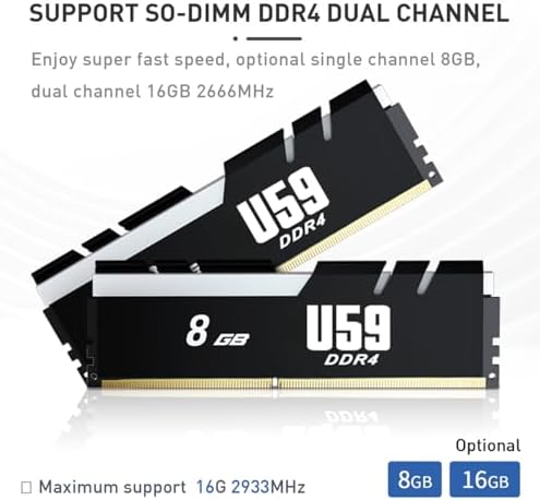 【Plentiful 11 interfaces & Saving Space】–Beelink U59 desktop pc mini features a variety of interface designs (4*USB3.0, 2*RJ45 1000M LAN, 1*Audio Jack (HP&MIC), 1*DC Jack) Easily meet office business needs, home audio and video needs. Beelink U59 mini computer comes with a wall-mounted bracket to allow you to hang mini computer behind the monitor. Saving your desk space and making your desk look tidier.