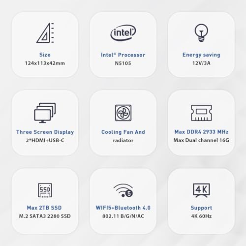 Beelink U59 Mini PC is equipped with the latest Intel 11th Gen 10nm 4-Core N5105(up to 2.9 GHz, 4 MB L3 Cache ).