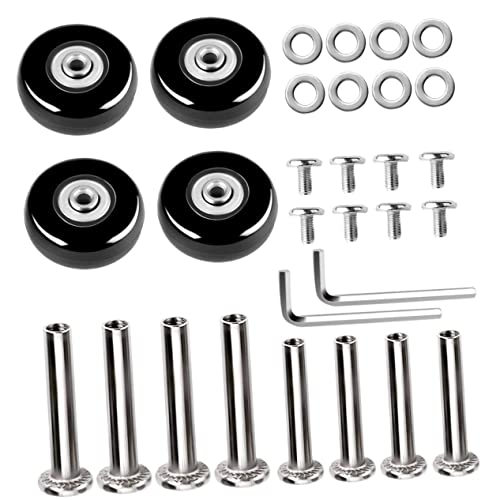 Replacement luggage wheels: – easy installation: the set includes two wheels, 2 wrenches, 24 accessories, you can assemble yourself, easy to use. the quietness and flexibility are completely safe for use buyers.